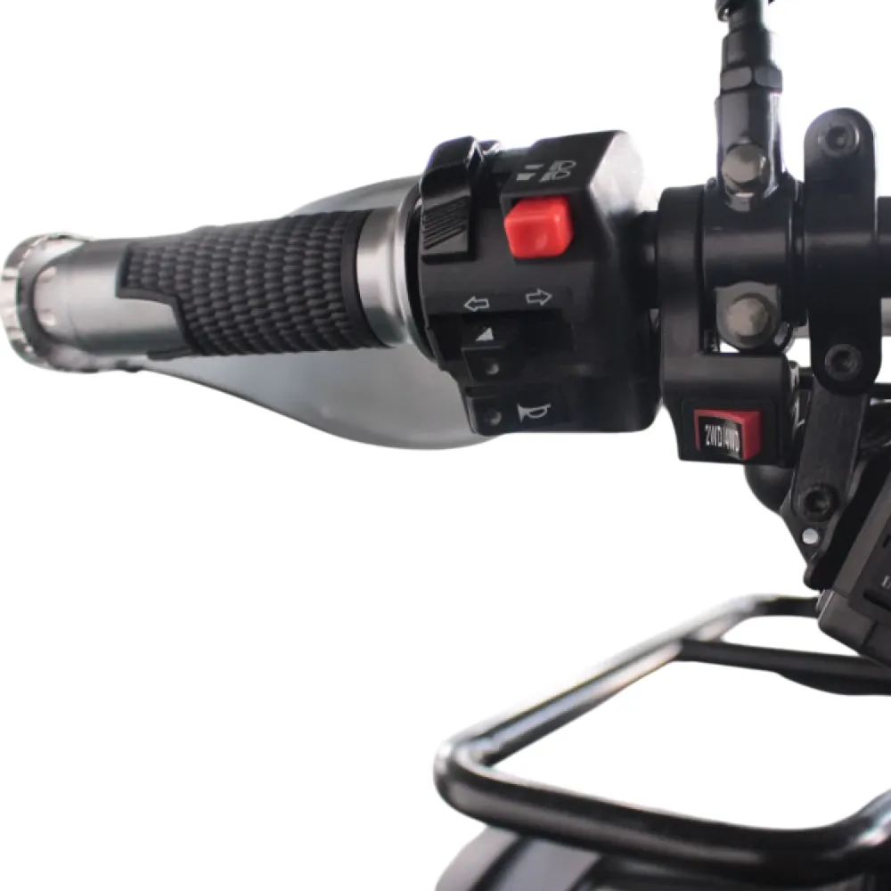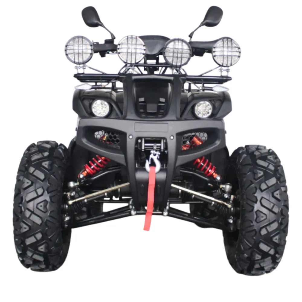Квадроцикл представлен штатной комплектацией, в которую входит все необходимое для скоростной езды и прохождения проблематичной местности. Полноприводная модель по скоростным характеристикам напоминает мотоцикл. Поэтому, перед покупкой техники следует изучить инструкцию по эксплуатации и купить дополнительные аксессуары безопасности. Дальность пробега на одной подзарядке зависит от АКБ, может составлять 70/120 и 180 км