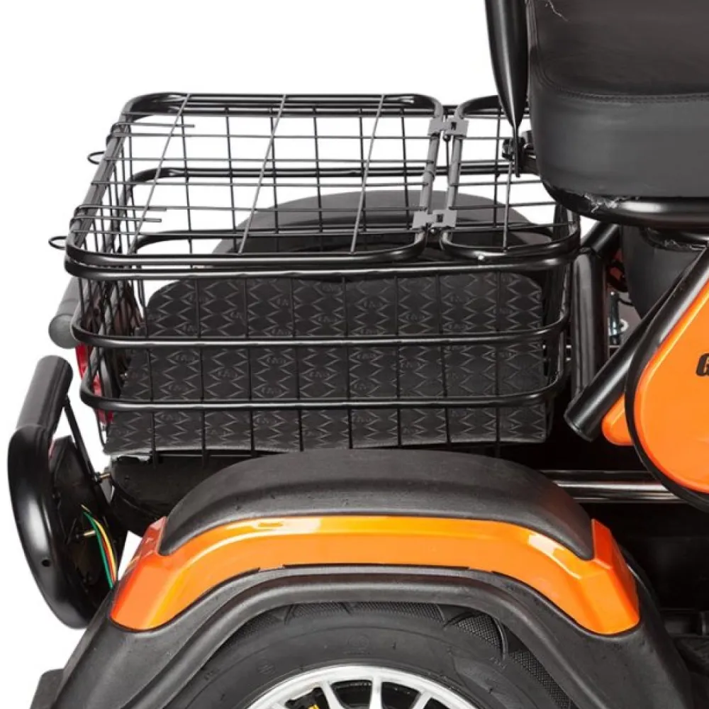 • Компактность и легкость: С весом всего 70 кг и габаритами 114х70х65 см, этот электрический трицикл легко маневрирует в условиях городской среды, не занимая много места при хранении.