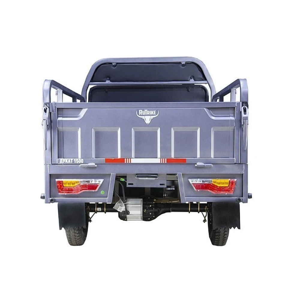 Грузовой электротрицикл Rutrike Дукат 1500 60 В 1000 Вт серый – лидер продаж сезона 2021. Востребована коммерсантами и предприятиями, специализирующимися на турбизнесе и развлечении, ведущими сельское хозяйства и проживающими в частном секторе. Вместительный кузов размерами 2900 x 1110 x 1355 оснащен откидывающимися бортами, которые важны при выполнении погрузочно-разгрузочных работ.