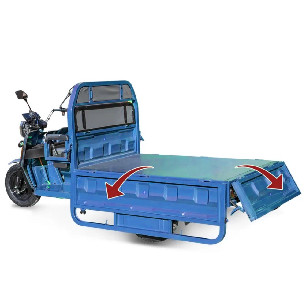 Грузовой электротрицикл Rutrike Маяк 1600 60V1000W синего цвета - это оптимальное решение для тех, кто ищет эффективное средство перевозки грузов с минимальными затратами на топливо и без вредных выбросов. Независимо от того, какие грузы вам необходимо перевезти, этот электротрицикл готов справиться с задачей и обеспечить вам комфорт и уверенность на дороге.