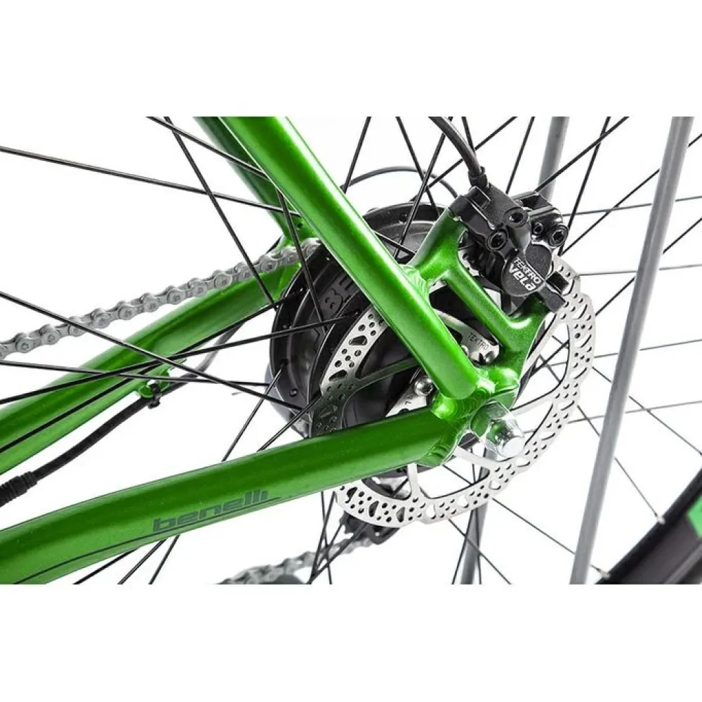 Электровелосипед Benelli E-misano, черно-зеленого цвета - техника с максимальной грузоподъемностью до 110 кг понравится взрослым райдерам и подросткам. Интересное сочетание цветов идеально подчеркивает вкус и индивидуальность пользователя. Езда на тс принесет райдеру хорошее настроение и позволит оздоровить организм, привьет желание заниматься спортом. Алюминиевая рама 23 кг обеспечивает повышенную маневренность и плавность хода. Наш интернет-магазин предлагает специальные акционные предложения и приятные покупки.
