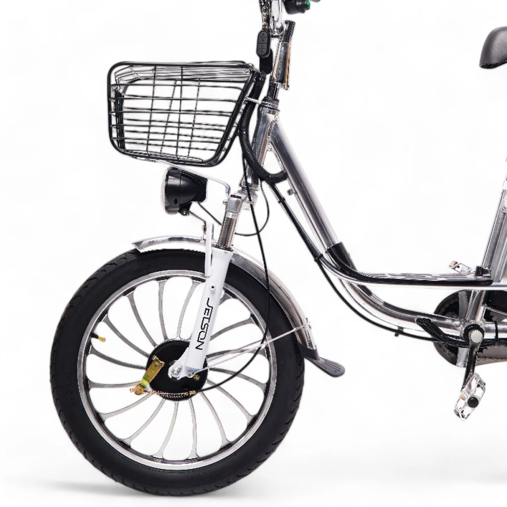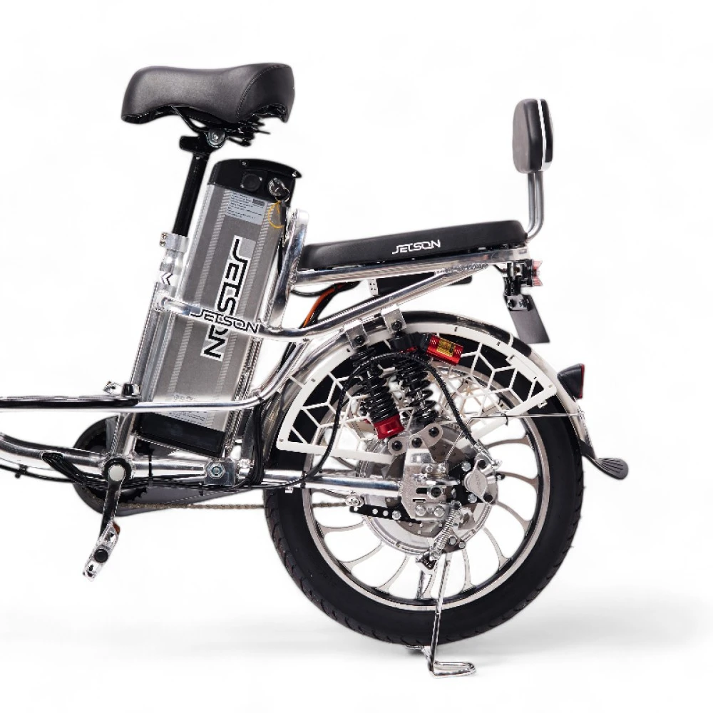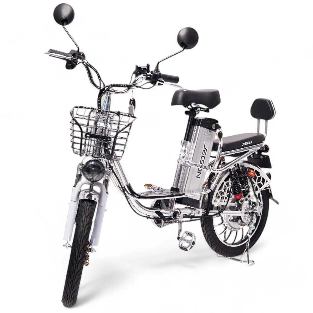 Электровелосипед Колхозник Jetson PRO MAX 20D (60V21Ah) 2024 года — это сочетание мощности и комфорта в классическом формате "колхозник". Оснащенный задним гидравлическим дисковым тормозом и передним барабанным, он обеспечивает надежное торможение в любых условиях. Мощный двигатель на 500W и литые диски делают поездку динамичной и устойчивой. Велосипед выполнен в стильном серебристом цвете и имеет большую платформу для ног, что добавляет удобства. Удобное большое сиденье и амортизация спереди и сзади обеспечивают комфорт даже на длительных маршрутах. Съемный аккумулятор на 21 Ah, расположенный за сиденьем, позволяет преодолевать до 90 км в режиме ассистента. Алюминиевая рама делает конструкцию легкой и прочной, идеально подходящей для городских и загородных поездок.