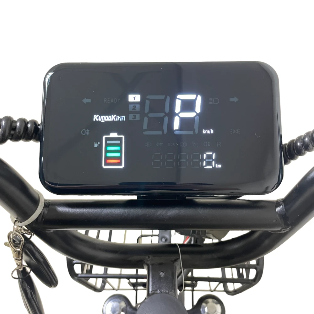 LED‑дисплей показывает скорость, заряд и пробег. Всё под контролем в любой момент.