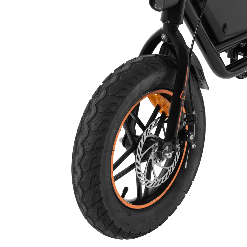 Надёжные дисковые тормоза гарантируют безопасность на любой скорости, а 14-дюймовые колёса обеспечивают устойчивость и уверенный ход. LED-фонарь освещает дорогу в тёмное время суток, а подножка добавляет удобства при парковке.