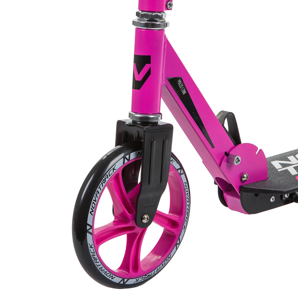 Самокат Novatrack POLIS 200 Plastic розовый — ваш лучший выбор для комфортных и безопасных поездок по городу. Этот городской самокат с большими колесами подойдет для детей и подростков от 8 лет, выдерживая нагрузку до 90 кг. Устойчивость и надежность обеспечиваются стальной вилкой и подшипниками класса ABEC-7. Дека длиной 55 см и шириной 14 см покрыта шкуркой, что гарантирует надежное сцепление с поверхностью.