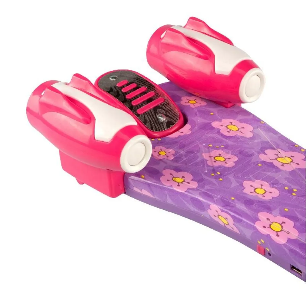 Главная особенность самоката - две турбины, расположенные в задней части деки, - они создают эффект вырывающегося пламени и дыма, как будто вы управляете космическим кораблем! Важно отметить, что такой эффект совершенно безопасен и не принесет вреда окружающим или самому ребенку. Дело заключается в паре, который образовывается из залитой внутрь жидкости, а за счет подсветки зрительно кажется, что он идет от «огня».